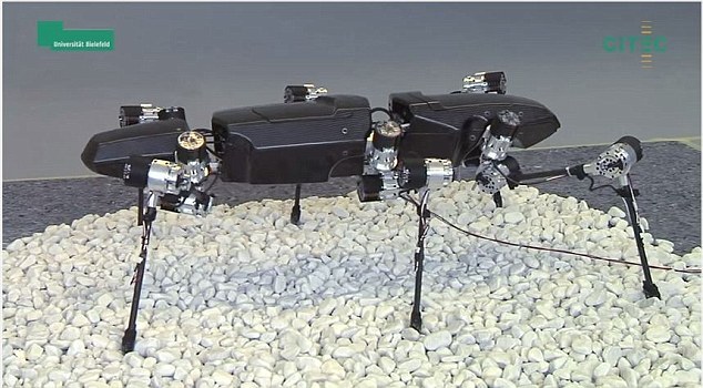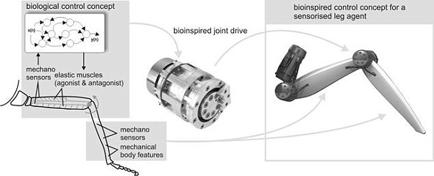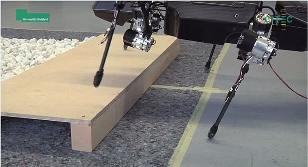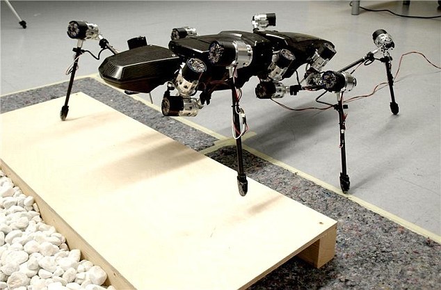 为了复制大自然的设计,这些机器人专家给它配上6条机器腿,使其可以顺利通过粗糙地面。这些机器腿共有18个弹性很强的关节。每条腿都塞满传感器,这有助于竹节虫机器人得到关于地面的反馈信息,使其可以翻越前方物体。