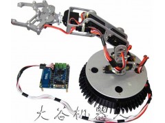而我们的6个伺服机器,以巧妙的机械结构,结合它的控制系统,展示了6自由度机器手动作的控制原理。它采用3个13kg扭力的金属齿轮、一个3.2kg、两个2.3kg的伺服和一些精密的铝合金加工组件组合而成。目前,我公司的机器手臂以390mm长度的为主,使用32路控制器来控制机器手臂的运行动作,本控制器采用atmega168 MCU,和电脑RS232串口通讯,可同时控制32颗伺服电机,双电源供电(6~12V单片机供电,4.8~6V伺服电机供电[伺服电机供电分别设有1-16路和17-32路供电端口]),同时还设有wi-fi无线控制模块,预留ISP下载口,用STK500 ISP下载线便可以下载MCU控制程序。
